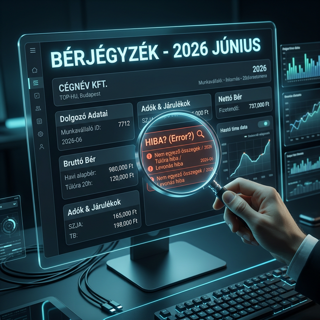 | Ledolgozott órák / teljesített idő | A számfejtés alapja órabéres vagy egyenetlen munkaidős elszámolásnál | Nem egyezik a jelenléti ívvel vagy a beosztással |