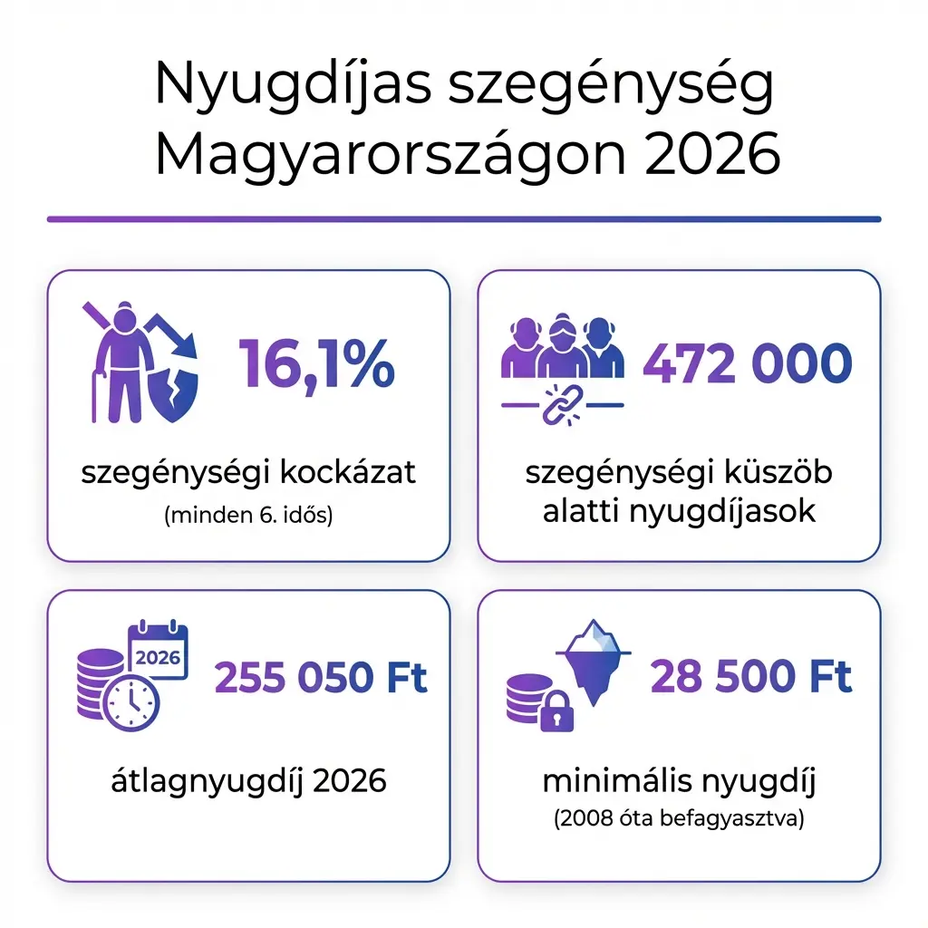 | Szegénységi küszöb alatti nyugdíjasok | ~472 000 fő | 23% |