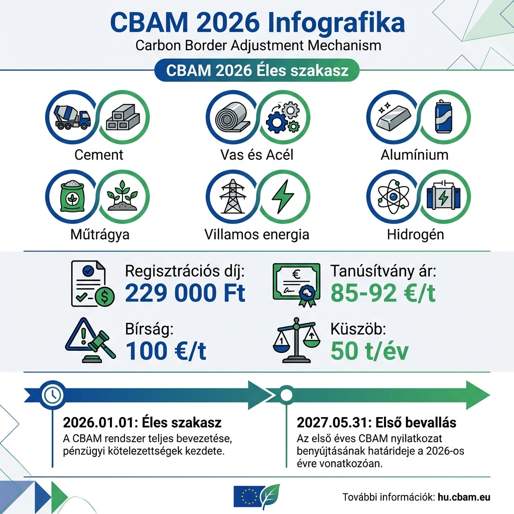 2026.01.01 | CBAM éles szakasz kezdete | Regisztráció szükséges importhoz |